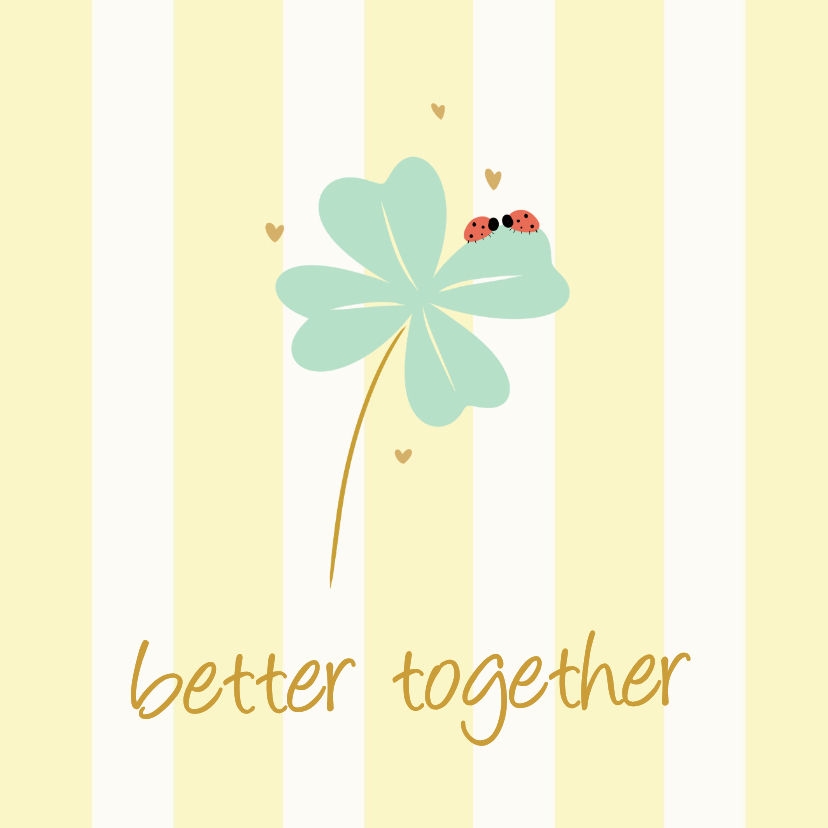 Dekofliese in gelb-weiß gestreift mit Kleeblatt und Aufschrift 'better together'.