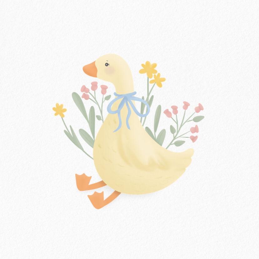 Liebliche Fliese als Deko oder Geschenk mit kleiner niedlicher Gans und Blümchen.