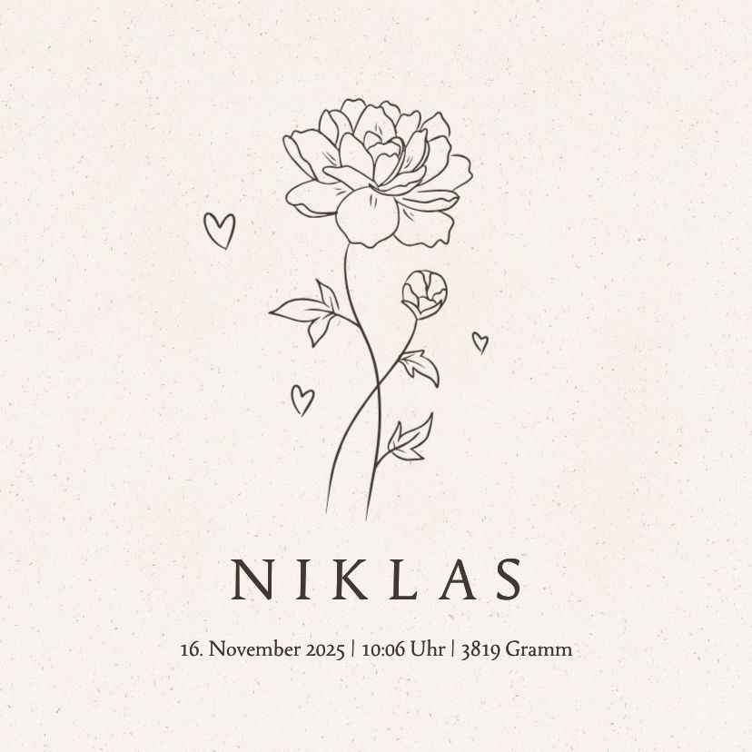 Stilvolle Dekofliese mit Geburtsblume Pfingstrose für den Monat November. Nach Wunsch personalisieren.
