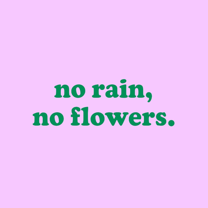 Fliese als Wohndekor mit englischem Spruch 'no rain no flowers' in bunt mit anpassbaren Farben.