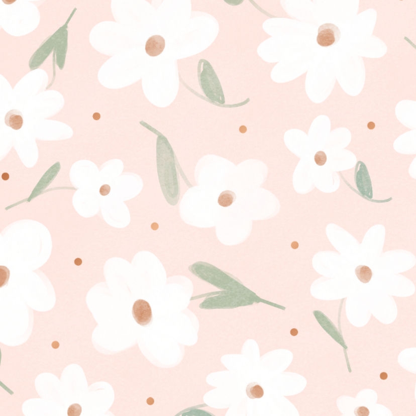 Dekofliese Wohndekor weiße Blumen auf Beige