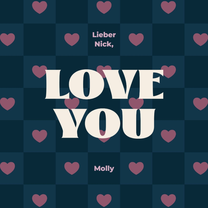 Fliese mit Herzmuster, Namen und Schriftzug 'LOVE YOU'. Toll zum Valentinstag!