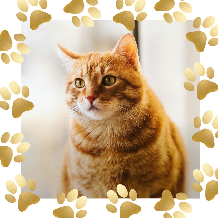 Dein Haustier auf einer Fliese, umrandet von goldenen Pfoten.