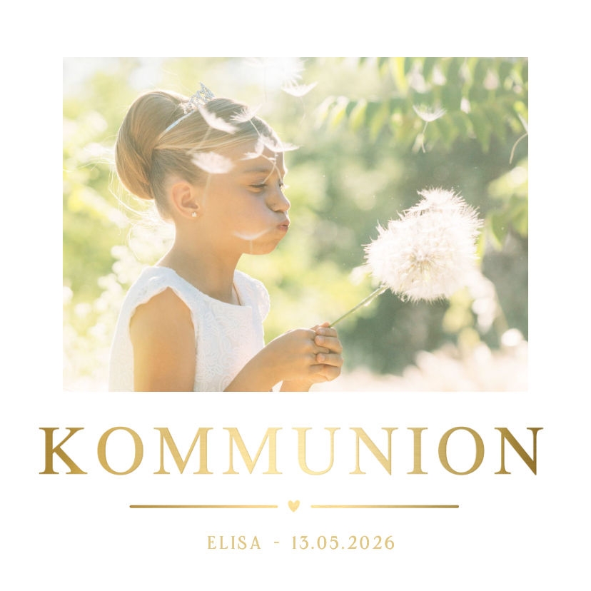 Fliese mit eigenem Foto und goldener Schrift zur heiligen Kommunion. Als Erinnerung oder Geschenk.