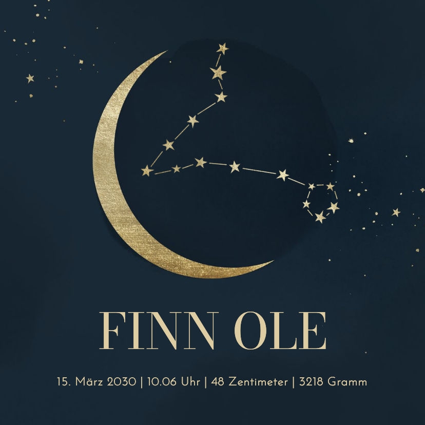Dekorative Fliese zur Geburt mit Sternzeichen Fische als Sternformation mit Halbmond, Name und Daten.