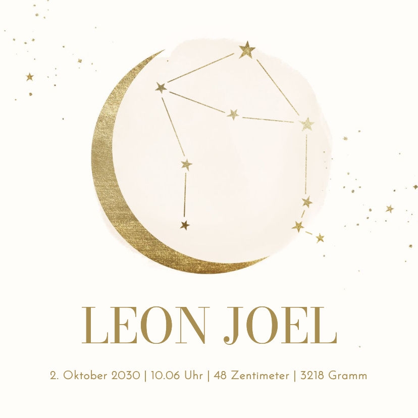 Dekorative Fliese zur Geburt mit Sternzeichen Waage als Sternformation mit Halbmond, Name und Daten.