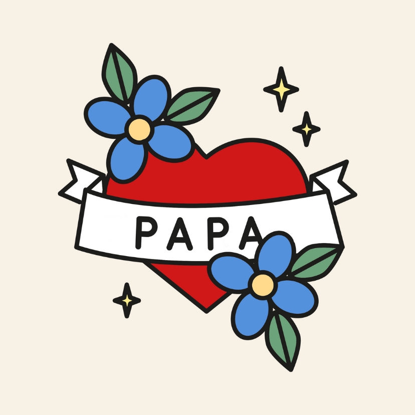 Hippe Dekofliese als Geschenk für 'Papa' im vintage Tattoo-Look mit Herz und Blumen.