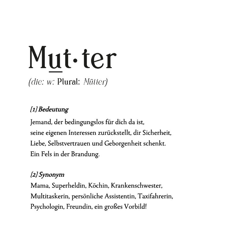 Lustige Geschenkfliese zum Muttertag oder einfach so für die beste Mutter mit Wörterbuch Definition.