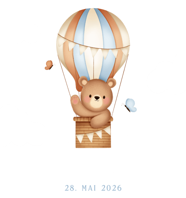 Niedlicher Teddybär im Heißluftballon als personalisiertes Nachtlicht mit Name, perfekt zur Geburt.