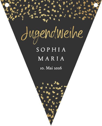 Wimpelkette zur Jugendweihe-Feier mit Fotos und Konfetti in Goldlook. Einfach personalisieren!