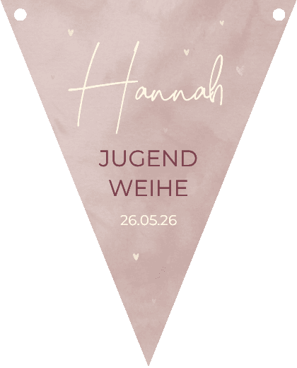 Foto-Wimpelkette mit Namen in Schreibschrift auf altrosa Aquarell-Hintergrund. Einfache Gestaltung!