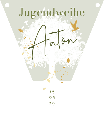 Wimpelkette zur Jugendweihe mit Baum & Vogel. Nur eigene Fotos und Texte einfügen!