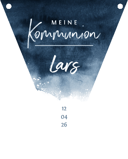 Kommunions-Wimpelkette mit Fotos und blauem Aquarell. Einfach zu personalisieren!