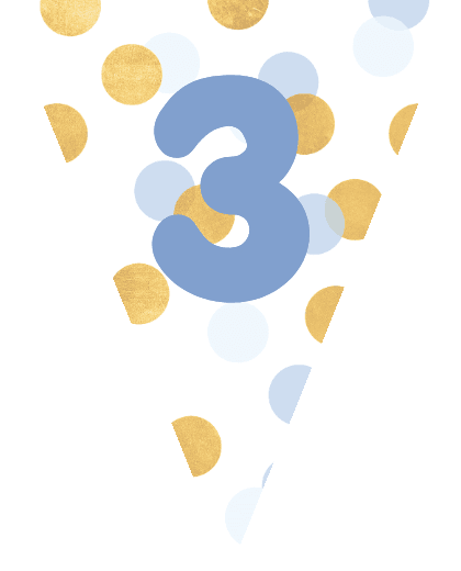 Bunte Fähnchen mit Konfetti, Zahl und eigenem Namen für eine persönliche Wimpelkette.
