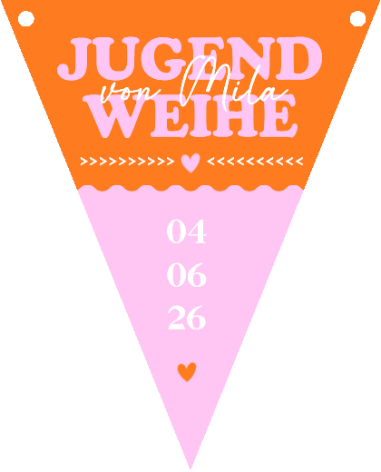 Wimpelkette in Orange und Rosa, zur Jugendweihe-Feier mit Fotos. Freie Gestaltung!