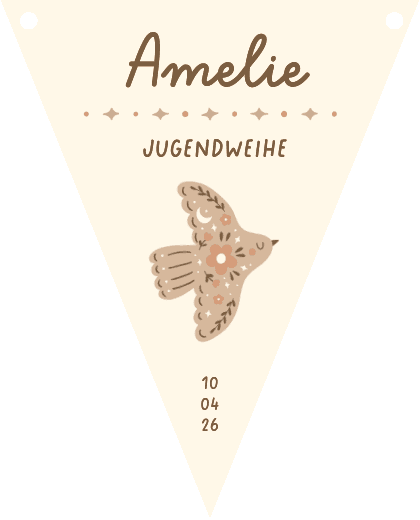 Wimpelkette zur Jugendweihe mit eigenen Fotos und stilisiertem Vogel. Nach Wunsch gestalten!