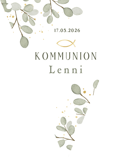 Wimpelkette zur Kommunion mit Eukalyptusblättern und eigenen Fotos. Frei gestalten.