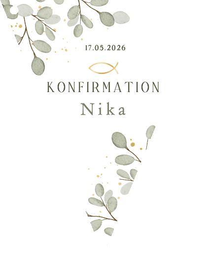 Wimpelkette zur Konfirmation mit Eukalyptusblättern und eigenen Fotos. Frei gestalten.
