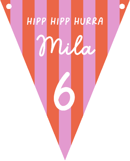 Wimpelkette mit Fotomöglichkeit und personalisiertem Text auf vertikalen Streifen in rosa-orange.
