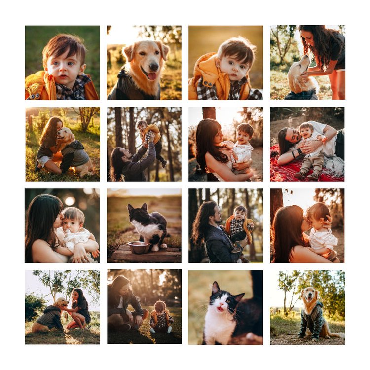 Quadratisches Poster mit Fotocollage für 16 eigene Fotos – einfach einfügen & gestalten.