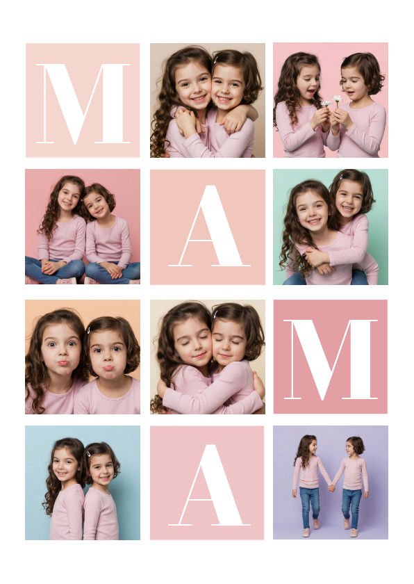 Fotoposter mit Platz für viele eigene Fotos und 'MAMA' in Quadraten.