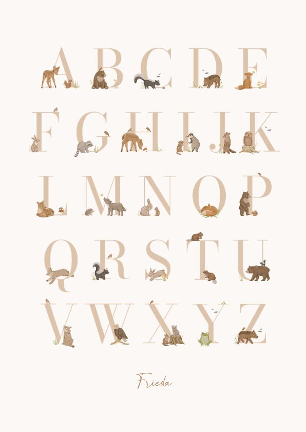 Poster Alfabet Waldtiere Buchstaben mit Name
