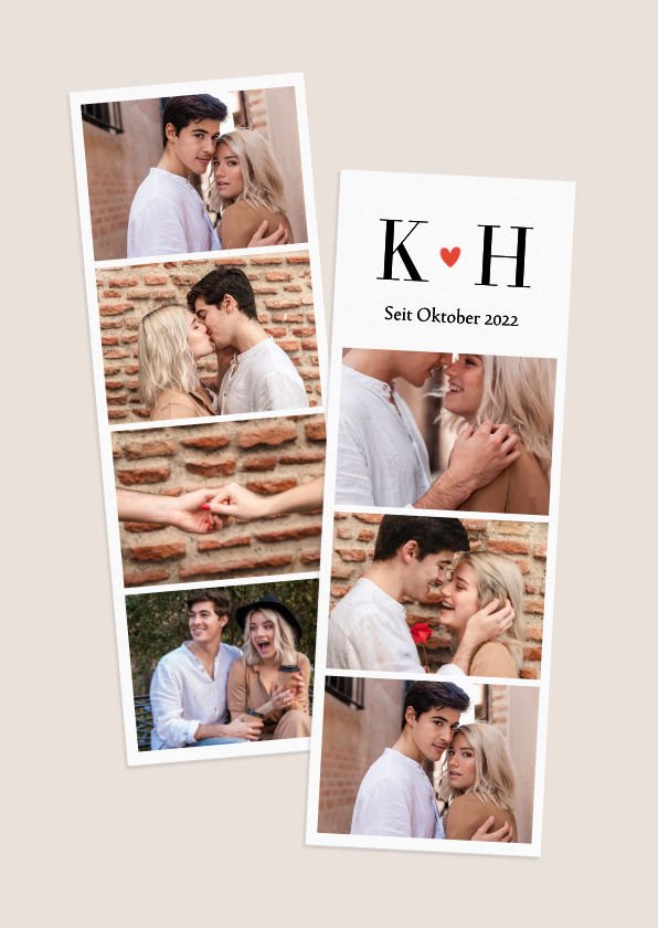 Poster mit Fotostreifen, Initialen, Datum & Herzchen.