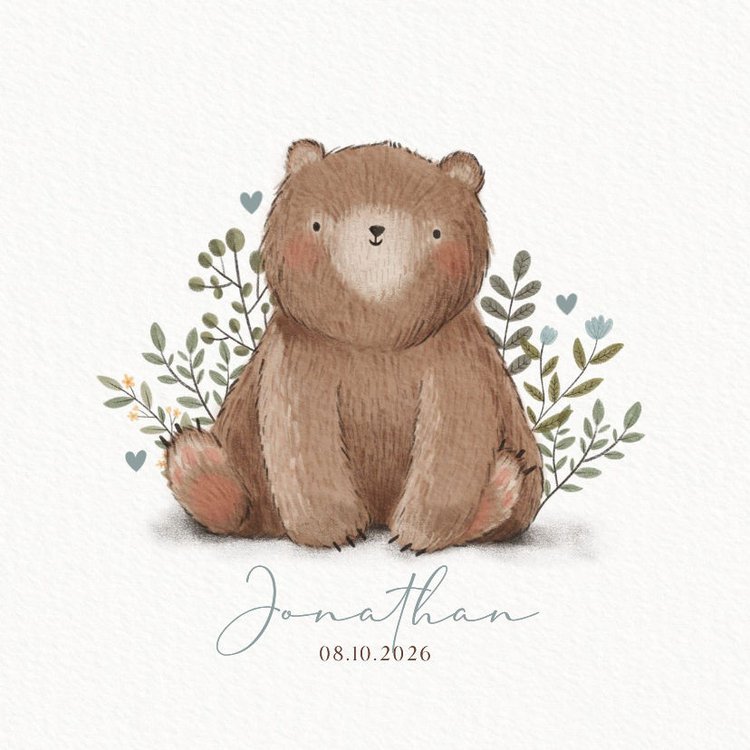 Dekoratives Poster zur Geburt oder fürs Kinderzimmer mit Bär, Name und Datum.