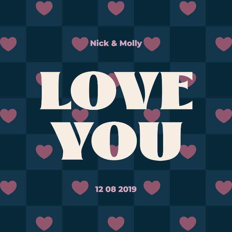 Poster mit Herzmuster, Namen und Schriftzug 'LOVE YOU'. Toll zum Valentinstag!