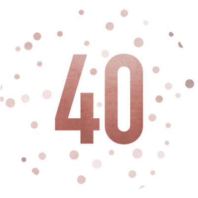 Weißer Aufkleber mit 40 und Konfetti in Kupferoptik