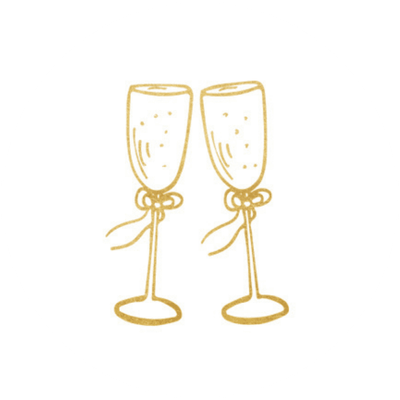 Weißer Aufkleber mit Sektgläsern in Goldoptik