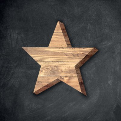 Aufkleber mit Holzstern auf grauem Hintergrund