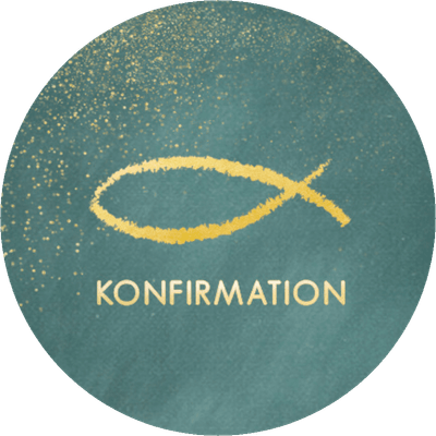 Grüner Aufkleber mit Konfirmation und Fisch in Goldoptik