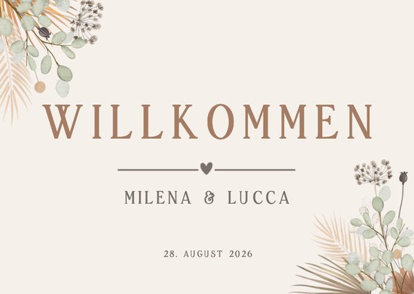 Ein Willkommensschild ist der perfekte erste Eindruck für besondere Momente. Ob Hochzeit, Taufe, Geburtstag oder andere feierliche Anlässe. Bei uns kannst du Willkommensschilder selbst gestalten und bequem online bestellen. So entsteht ein persönliches Design, das Gäste sofort willkommen heißt. Ob klassisch, modern oder verspielt – unsere Willkommensschilder eignen sich für viele unterschiedliche Anlässe und Locations.
