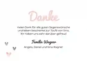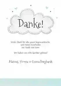 Bedanken Sie sich mit Ihrer Danksagung von der Taufe bei Ihren Lieblingsmenschen fürs Dabeisein, fürs mit Ihnen Feiern, die Glückwünsche und die Geschenke. Was von Herzen kommt, trifft auch bei Ihren Liebsten mitten ins Herz.