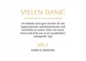 Schreiben Sie Ihren Dank an alle Herzensmenschen, die mit Ihnen das große Fest der Taufe feierten. Haben Ihnen nicht geladene Gäste zum Fest gratuliert? Oder sogar Geschenke überbracht?