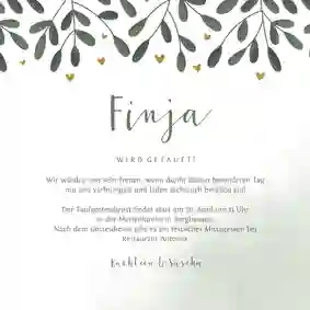 Teilen Sie Ihren Lieblingsmenschen mit, wer zu was einlädt, sowie wann und wo die Feier stattfindet. Und, dass Sie und der Zwerg sich auf ein gemeinsames Fest freuen. Sie möchten noch mehr? Besonders persönlich gestalten Sie Ihre Einladungen zur Taufe, wenn Sie handschriftlich ein paar Worte in die Karte einfügen. Entweder den ganzen Text oder zumindest Ihre Unterschrift. Der gute alte Füller erfüllt hier seinen Zweck. 🖋️