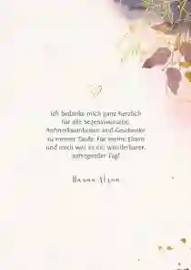 Menükarte zur Taufe in hip-botanischem Look. Einfach zu gestalten und extra schön auf einer besonderen Papiersorte!
