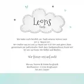 Menükarte zur Taufe des kleinen Bruders mit süßen Elefanten und Herzen. Auf der Rückseite ist Platz für ein Foto!