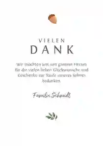 Tolle Einladungskarte zur Taufe im Herbstlook mit rundem Foto. Alle Texte sind anpassbar. (Für quadratische Karten fallen extra Portokosten an.)