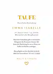 Erwähne, wer was, wann und wo feiert. Mit einem Reim, einem tiefgehenden Zitat oder einer Weisheit aus der Bibel unterstreichst du deine Worte. Bist du gerade überfordert mit dieser Aufgabe? Wir haben die Lösung! Schmöker gerne in dem Artikel „31 bezaubernde Taufeinladung-Texte“ – dort haben wir für dich die schönsten Sprüche zur Taufe gesammelt.