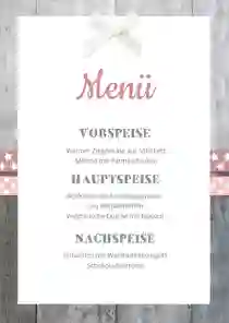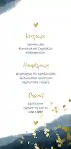 - Vorspeise, Hauptgericht, Dessert (z.B. auf der rechten Innenseite deiner Doppelkarte)