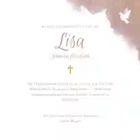 - Gestalte deine Fotokarte zur Taufe. Füge dein persönliches Foto hinzu und ergänze die Karte mit schönen Schriftarten, christlichen Symbolen und den wichtigsten Informationen zur Taufe.