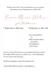 🤍 Tipp: Unser Kundenservice steht dir in dieser schwierigen Zeit gerne zur Seite – egal, ob bei allgemeinen Fragen oder für Hilfe beim Gestalten deiner Einladung zur Trauerfeier.