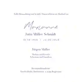 💌 Tipp: Nach der Trauerfeier ist es üblich, Danksagungen zu verschicken, um sich für die Anteilnahme, die Unterstützung und alle lieben Worte zu bedanken.