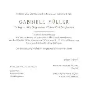 💌 Tipp: Nach der Trauerfeier ist es üblich, Danksagungen zu verschicken, um sich für die Anteilnahme, die Unterstützung und alle lieben Worte zu bedanken.