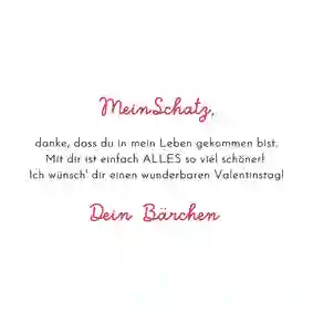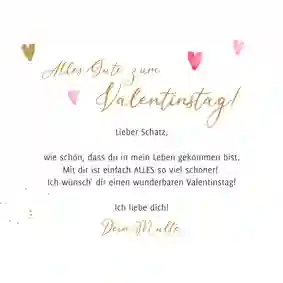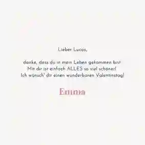 Besonders schön sind persönliche Botschaften auf der Valentinstag Karte: Schreibe über gemeinsame Erlebnisse, besondere Erinnerungen oder das, was du an deinem Lieblingsmenschen besonders schätzt.