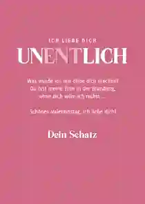 Wir drucken deine Valentinskarte mit lustigen Texten auf der gewünschten Papiersorte und schicken sie direkt an die Adresse deines Lieblings. Schnell, unkompliziert und perfekt für spontane Valentinsüberraschungen.