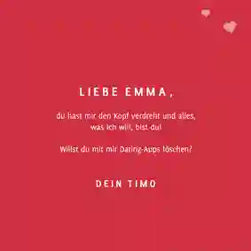 Wähle eine unserer lustigen Vorlagen und mach deine Karte noch persönlicher. In unserem praktischen online Designtool gestaltest du deine lustige Valentinstag Karte ganz einfach mit einem eigenen Text. Ob kurzer Insider-Witz, liebevolle Neckerei oder persönlicher Spruch, so wird aus deiner Valentinskarte ein echtes Unikat.