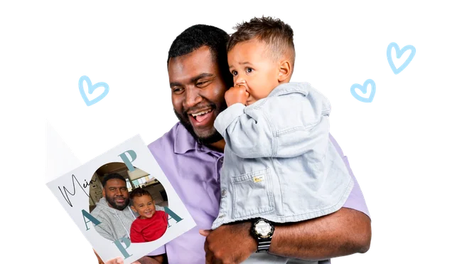 Personalisiere Vatertagskarten und Geschenke mit eigenen Fotos & Texten.